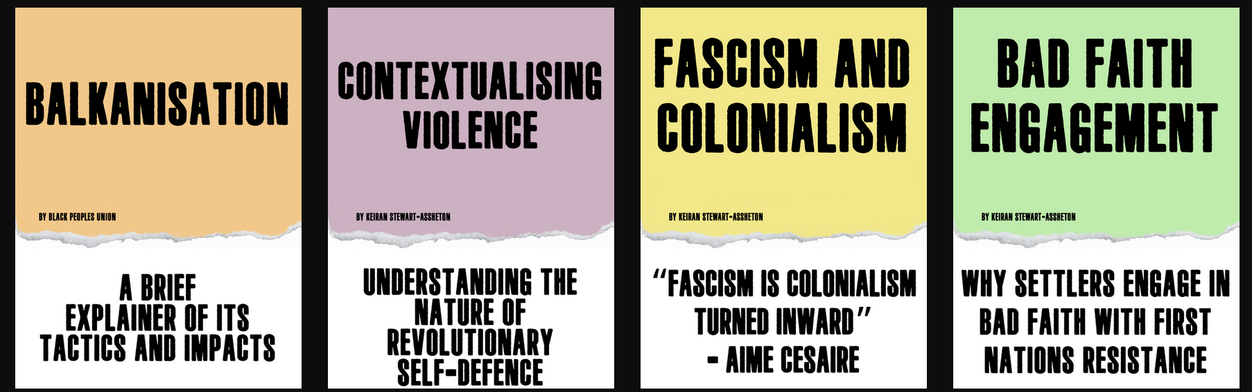 We highly recommend this series of zines produced by Keiran Stewart-Assheton under Yillamin. They are fantastic, accessible educational resources, engaging with a range of topics in easy to understand language.